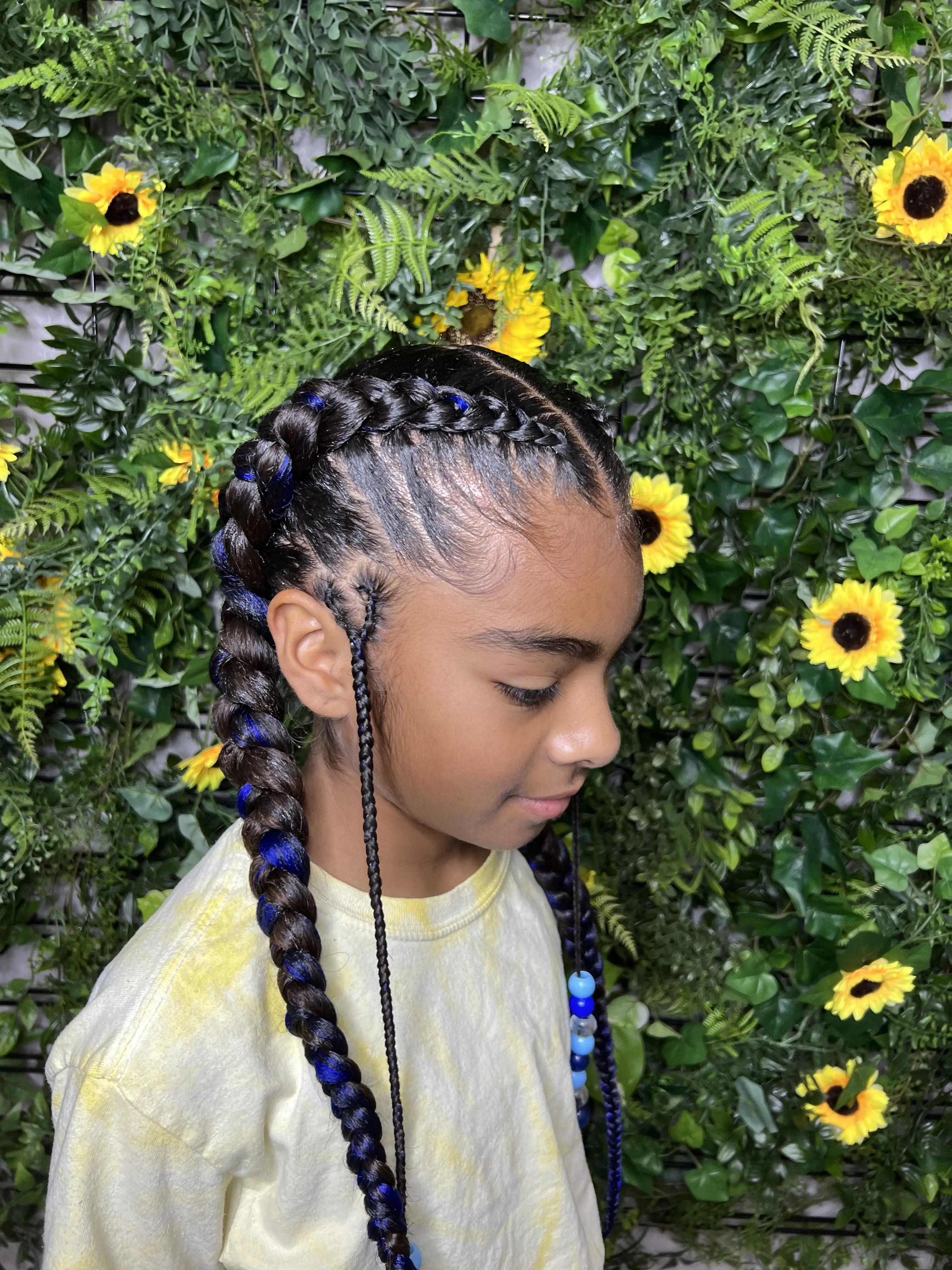 Kids 2 Feedin braids offer a neat, polished look designed specifically for children, combining style, comfort, and durability. This protective hairstyle helps maintain healthy hair by minimizing daily manipulation while keeping your child’s hair secure and manageable. Hair is not included