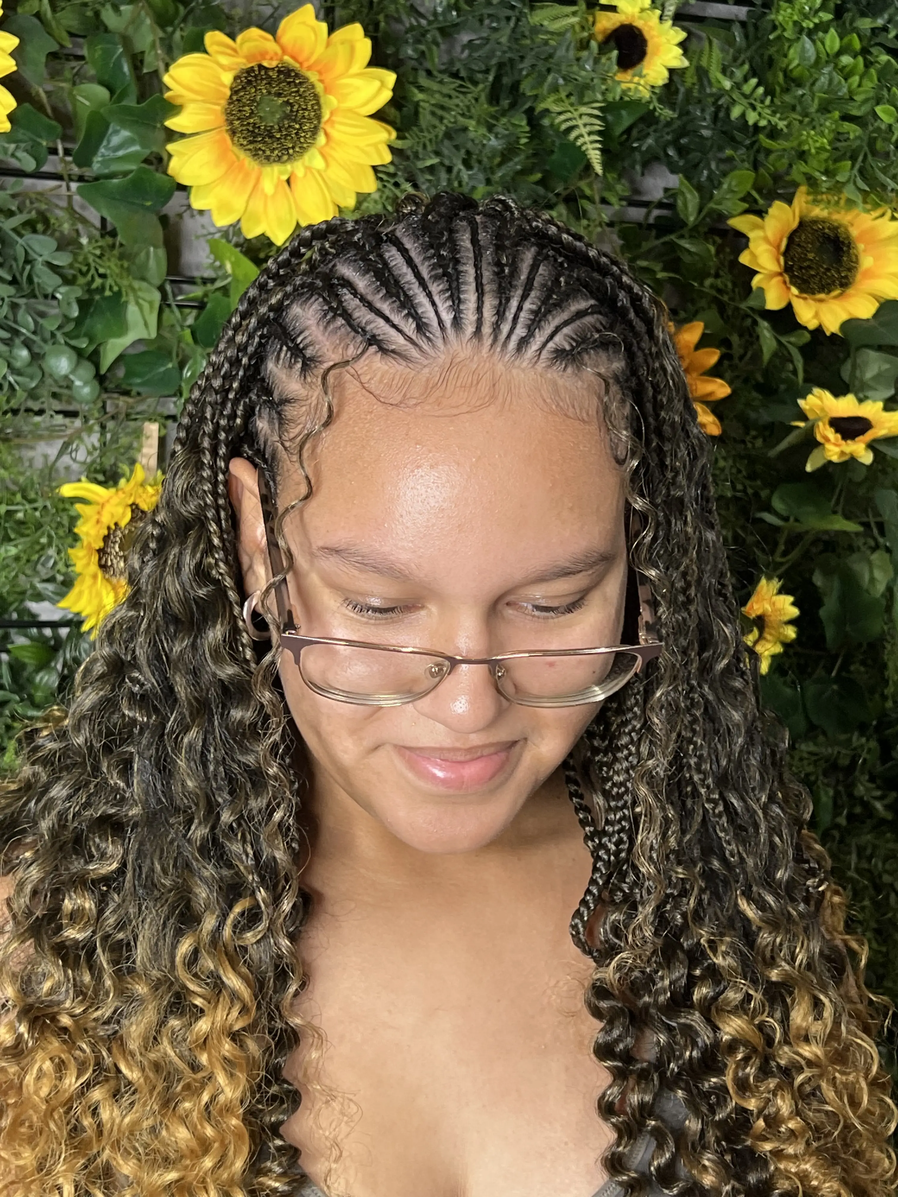 Get the best of both worlds with a half cornrows, half twists style that is equal parts bold and playful. Cornrows in the front keep your look sleek, while twists in the back add movement and texture. This combo is perfect if you love a creative, fashion-forward vibe without committing to a full braid or twist set. We’ll customize the parting and size to suit your features and hair density. Walk out with a head-turning style that’s flirty, fun, and totally unforgettable.