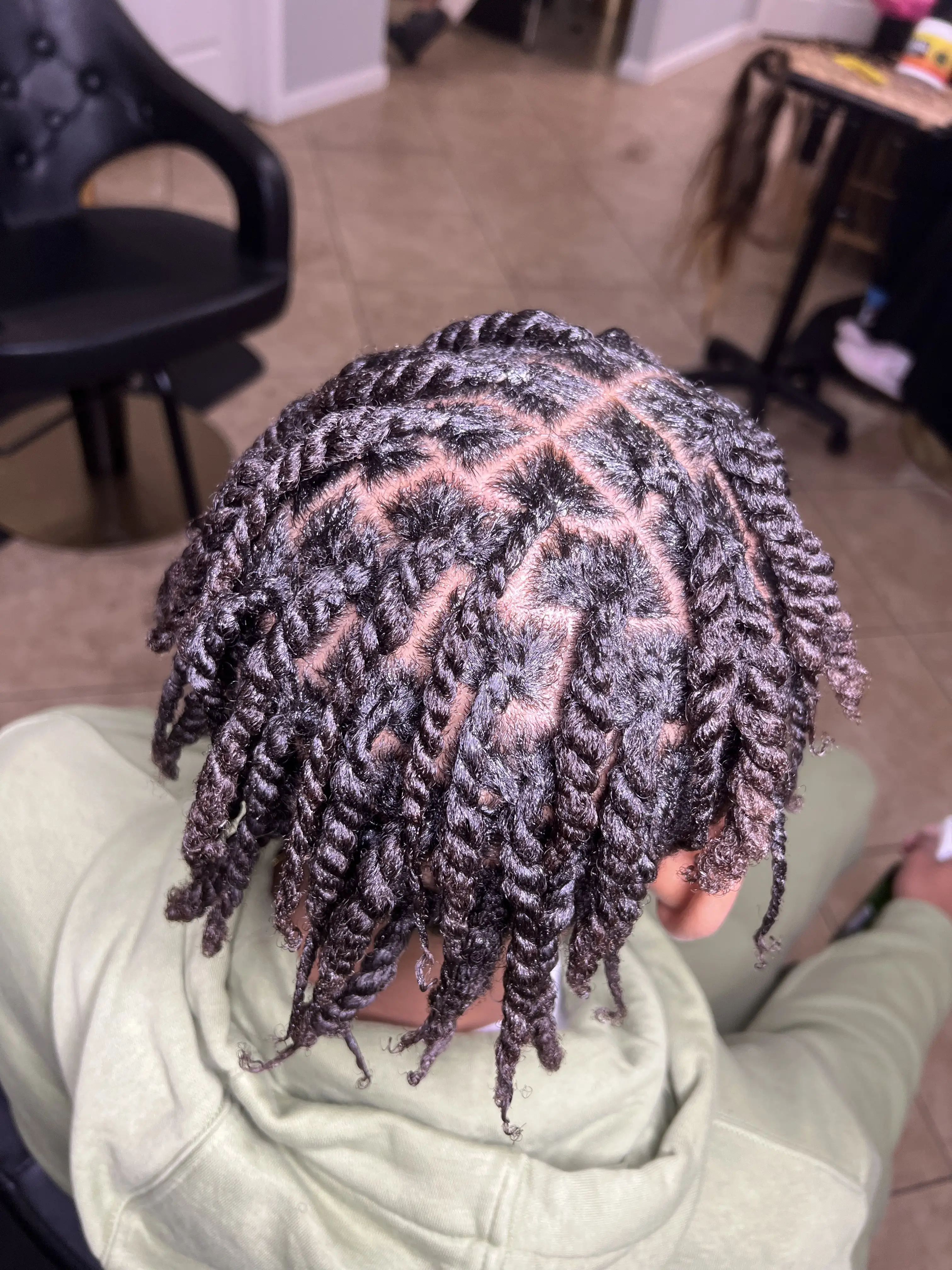 Two-strand twists are a timeless, protective style that showcases your natural beauty. Perfect for all ages and hair types, they’re low maintenance and easy to wear. Our twists are neat, defined, and last for weeks. You’ll love the versatility — wear them out or unravel for gorgeous twist-outs! Keep your hair healthy and stylish the natural way. **Wash included **